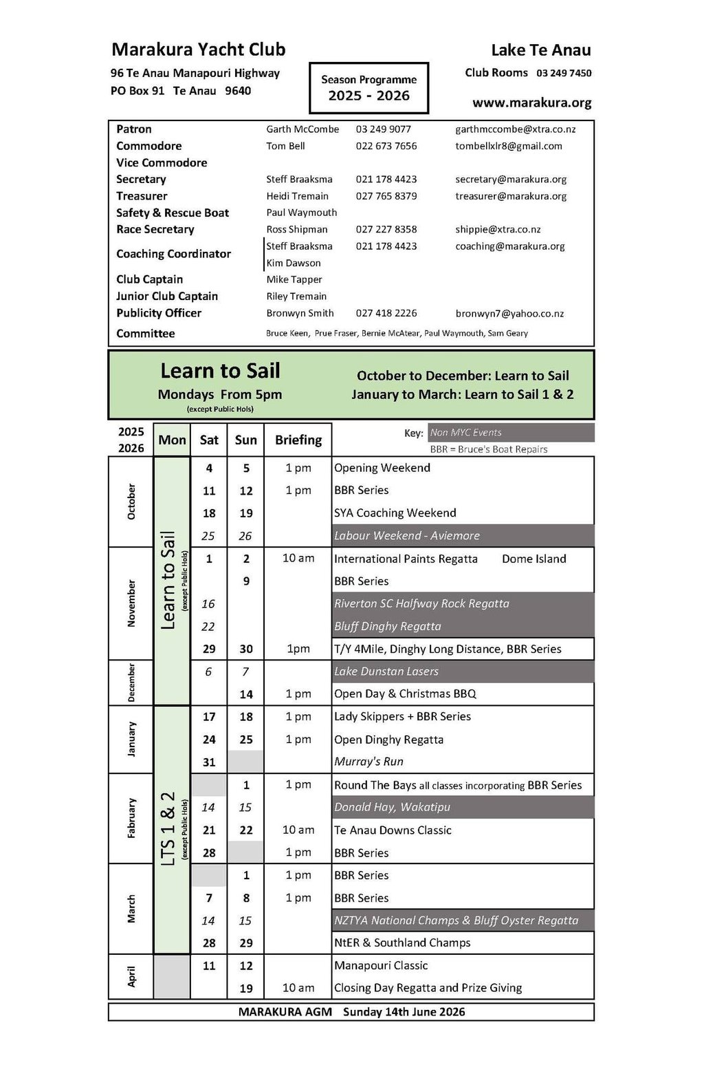 Secretary - secretary@marakura.org